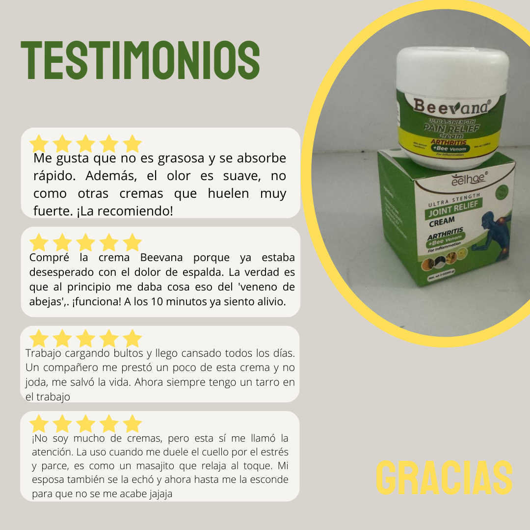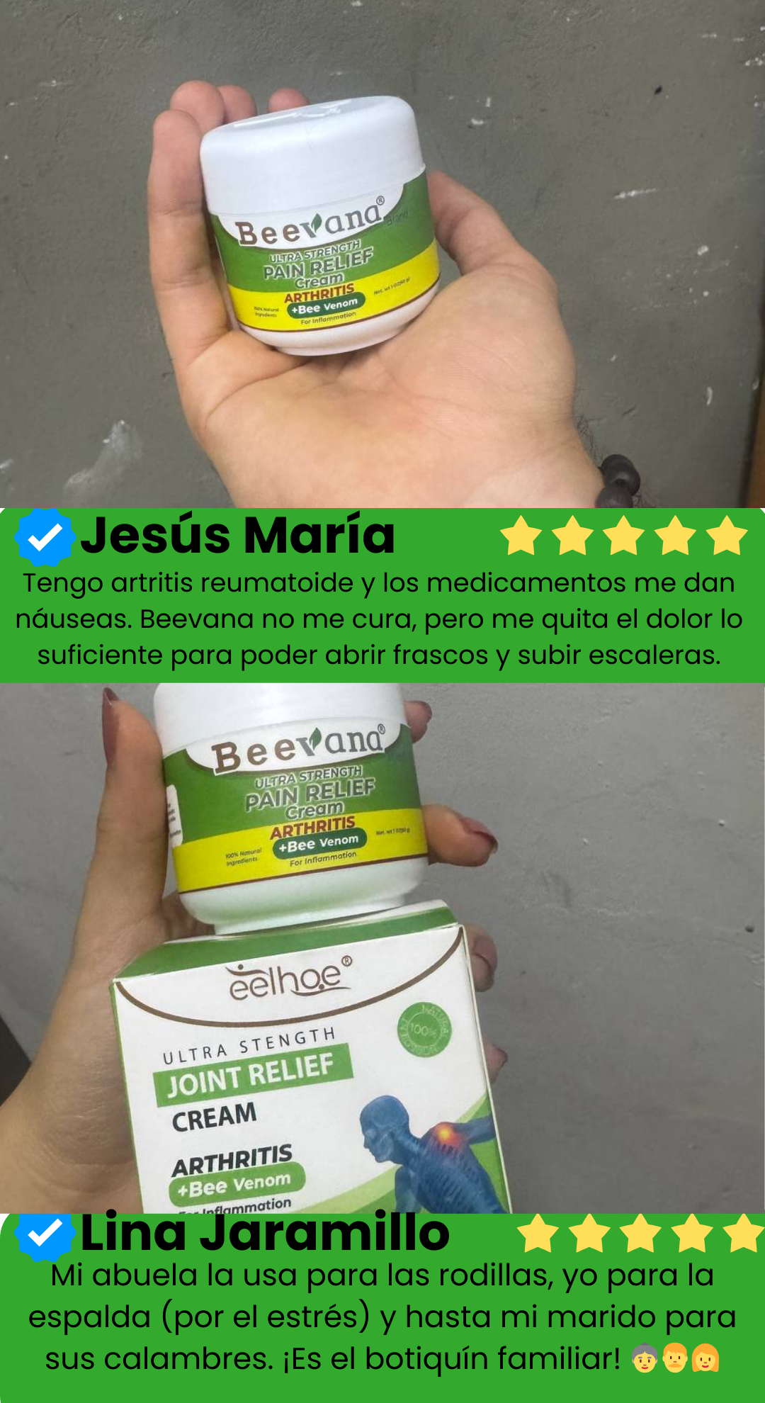 Con ingredientes activos como veneno de abeja, glucosamina y extractos herbales.